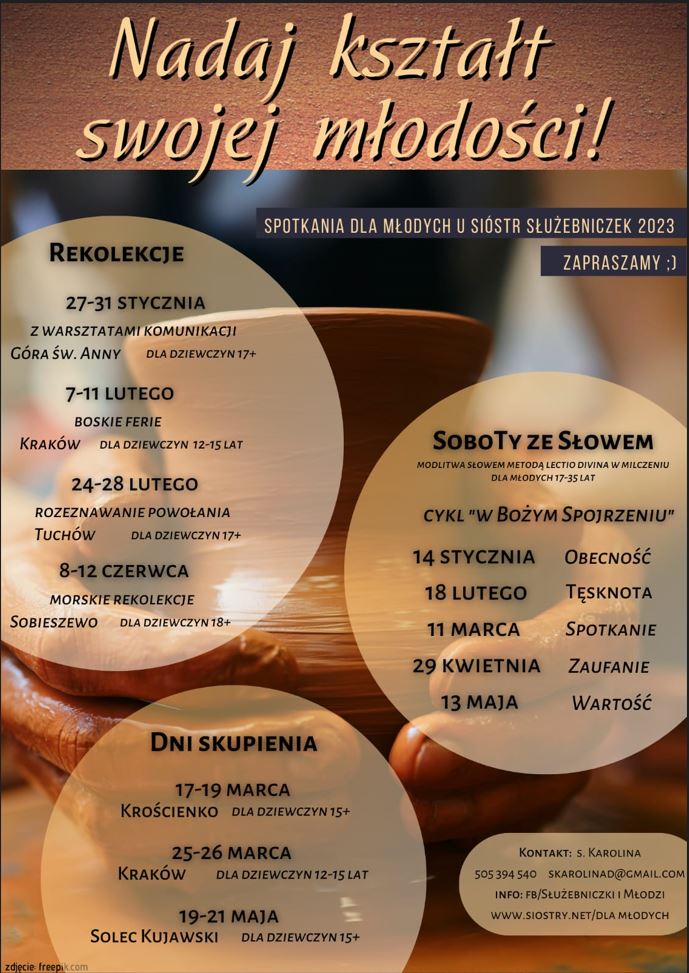 Młodość to najlepszy czas na kształtowanie siebie, rozwijanie swoich talentów, budowanie nowych więzi oraz do stawania się coraz piękniejszymi w Bożych oczach. Zachęcamy Was do piękniej przygody z Jezusem przez podjęcie odważnej formacji duchowej . Zapraszamy na cykl młodzieżowych spotkań. Każdy znajdzie coś dobrego dla siebie…