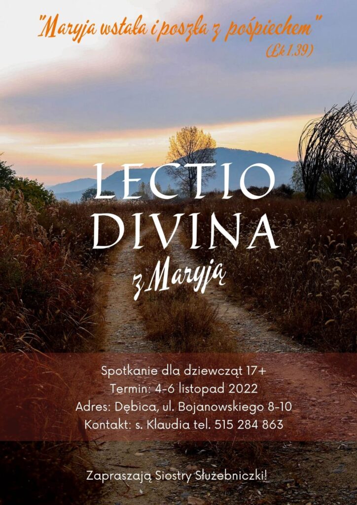 Zapraszamy Was do spotkania z Bogiem w ciszy. Chcemy zatrzymać się przy Słowie Bożym, aby usłyszeć co Bóg chce nam powiedzieć. Spotkanie ze Słowem będzie okazją do odnowienia osobistej relacji z Bogiem. On jest naszym źródłem, które podtrzymuje w nas młodość, nadzieję i radość przeżywania wiary. W słuchaniu Słowa będzie towarzyszyła nam Maryja. Ona miała odwagę iść z pośpiechem, aby być blisko ludzi i zanieść innym Jezusa. Napełniona wiarą szła spotkać się z drugim człowiekiem i wielbiła Boga za wszystko co czynił w Jej życiu. Jest dla nas wzorem przeżywania w pełni swojej młodości.