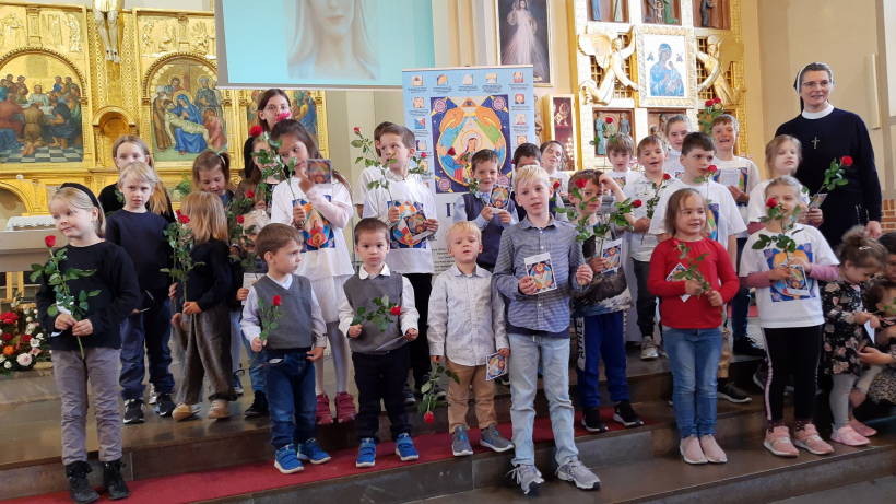 Po kazaniu wszystkie dzieci wraz z rodzicami podeszły do ​​ołtarza i oddały się pod opiekę Maryi podczas śpiewu pieśni po duńsku: Przez Maryję do Jezusa pragniemy iść drogą. Czerwoną różę z rąk dzieci ofiarowano Matce Bożej.